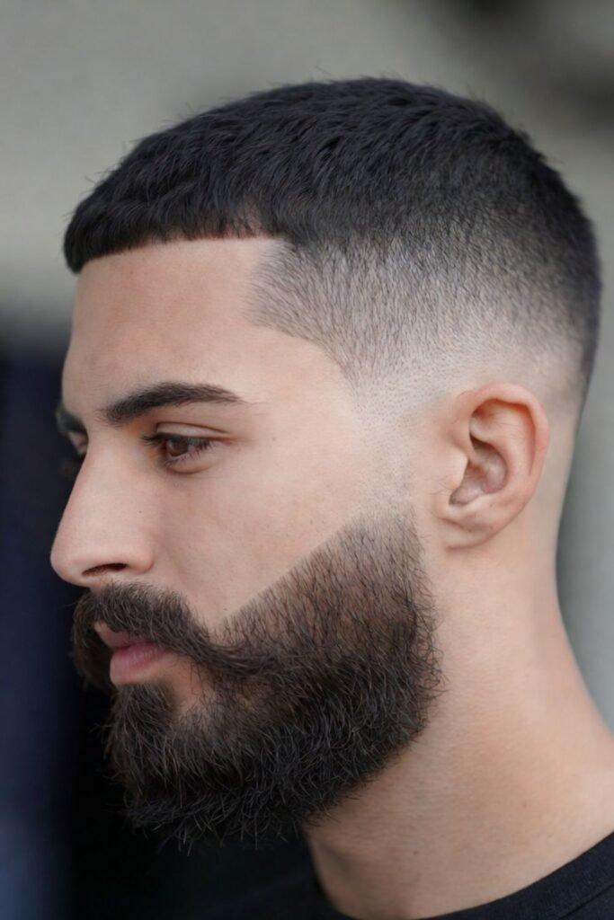 10. Crew Cut with Fade and Beard Blend