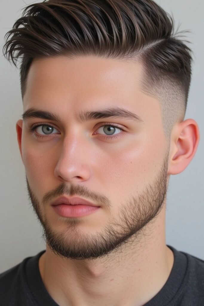 This style works beautifully for men with full beards. It enhances facial structure and gives a rugged yet polished finish that performs well on grooming boards.