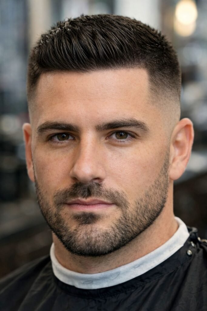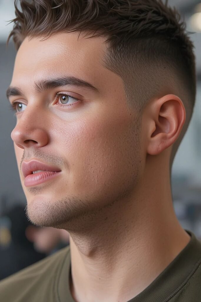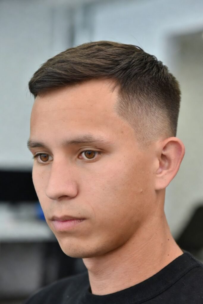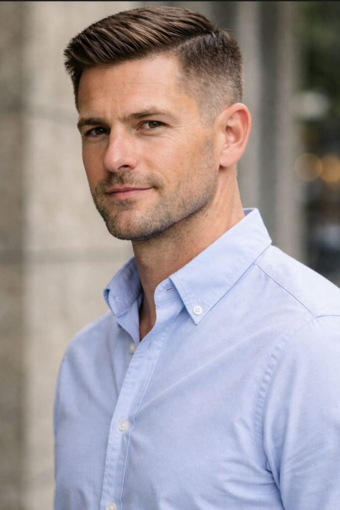 This haircut delivers a professional and disciplined look without going extremely short. It’s easy to style with a touch of pomade and requires trims every few weeks to maintain its clean silhouette. It’s perfect for men who want structure without losing versatility.