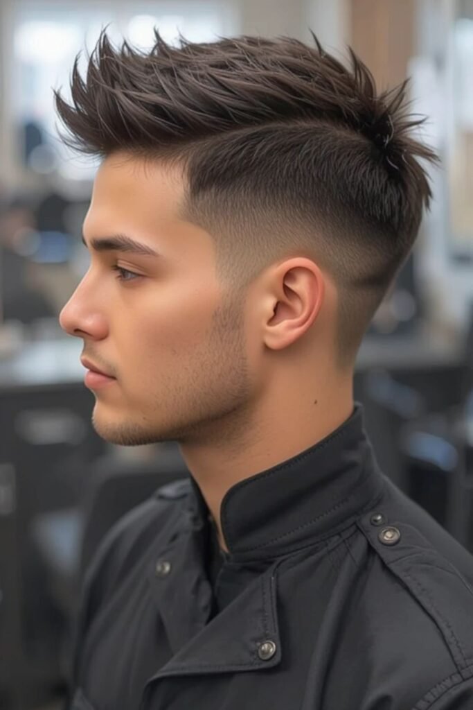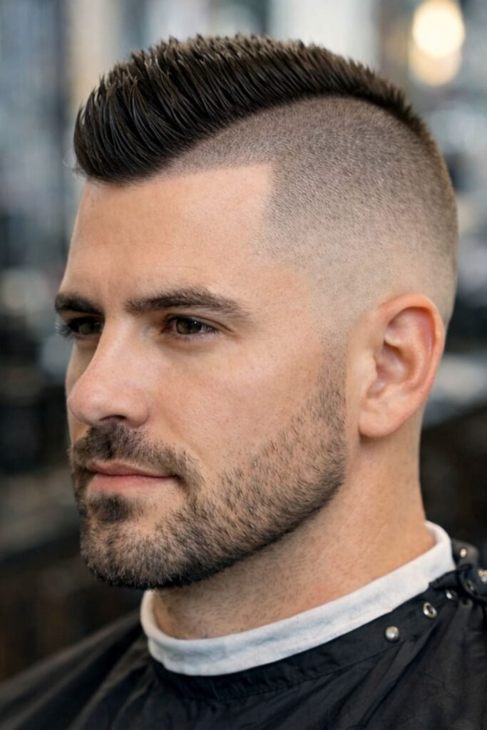 Though edgy, it remains low maintenance due to short lengths. It’s perfect for confident men who want a standout military-inspired cut.
