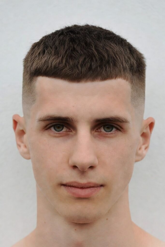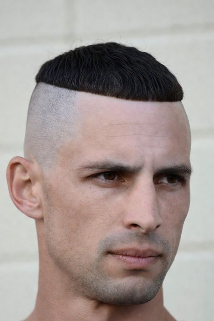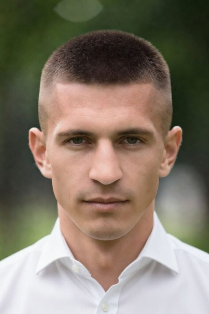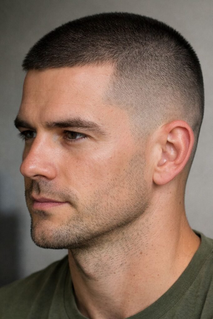 This bold military haircut requires almost no styling but makes a strong statement. It’s ideal for men who want a tough, authoritative appearance