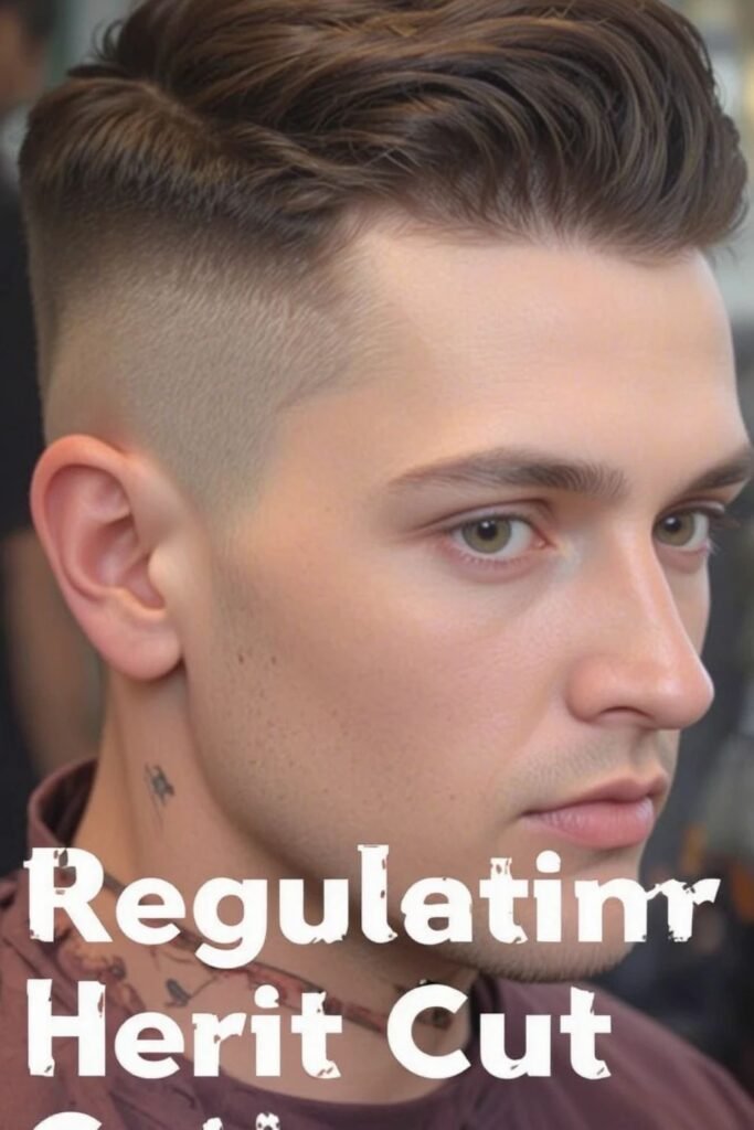 The regulation cut is a classic military haircut that balances short sides with a neatly styled top. The sides are clipped short but not shaved, while the top remains long enough to comb or part.