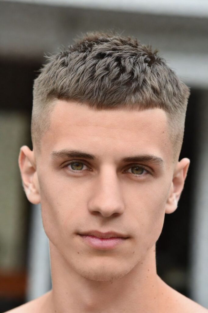 This haircut is ideal for men who want the ultimate low maintenance style. There’s no need for gel, combing, or blow-drying—just wake up and go. It works especially well for men with strong facial features, as the short length highlights the jawline and cheekbones while delivering a clean and confident appearance.