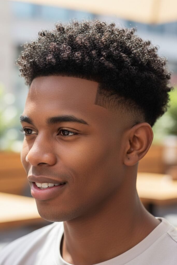Curly hair can sometimes look bulky, but a buzz fade helps control volume while keeping natural texture visible. The fade reduces thickness on the sides, allowing the curls on top to stand out in a neat and balanced way.