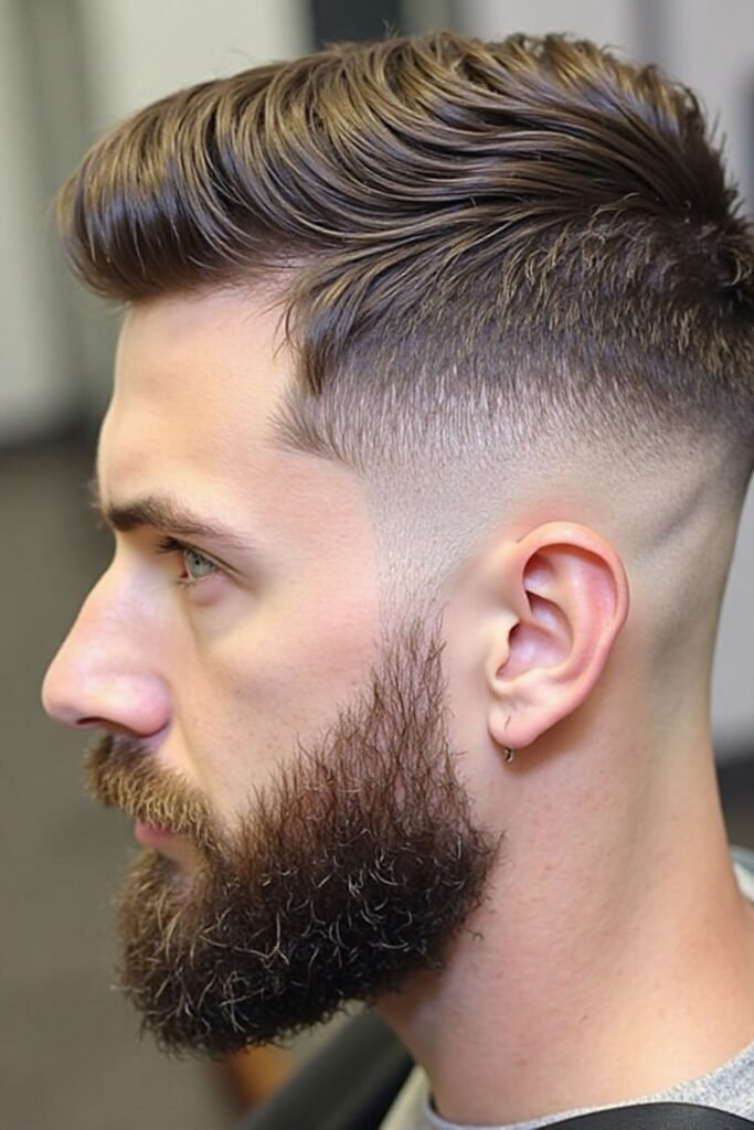 This haircut is ideal for men who want a stylish yet mature look. It highlights the jawline and enhances facial structure. Maintaining both the beard and fade regularly ensures the style remains clean, sharp, and visually appealing.