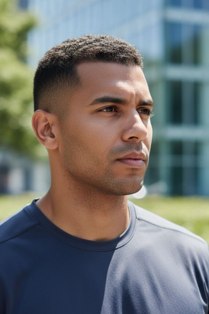 Athletes often prefer buzz fade haircuts because they stay secure during intense physical activity. The short length prevents hair from falling into the face, allowing better focus during sports, workouts, and training sessions.