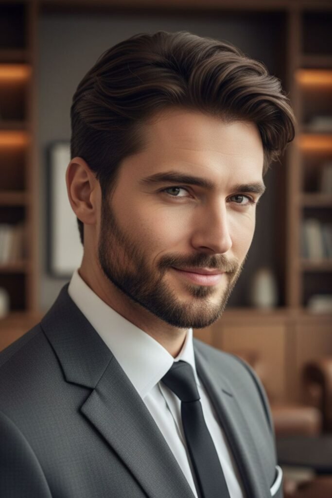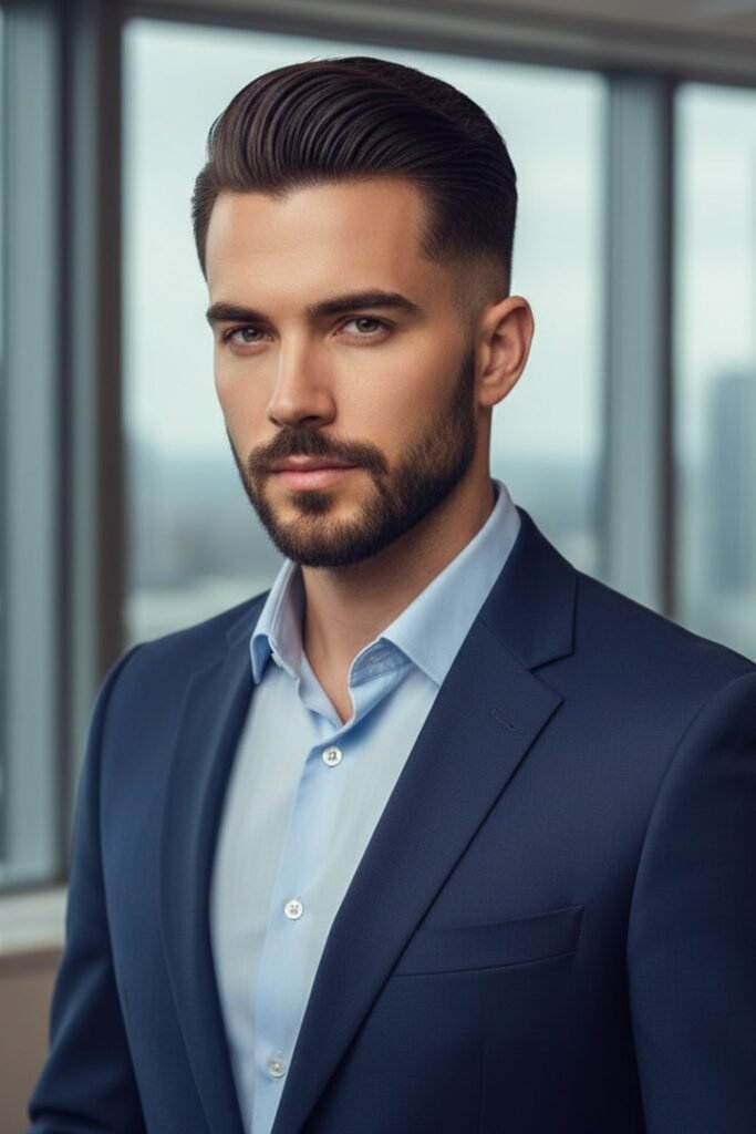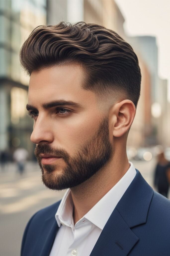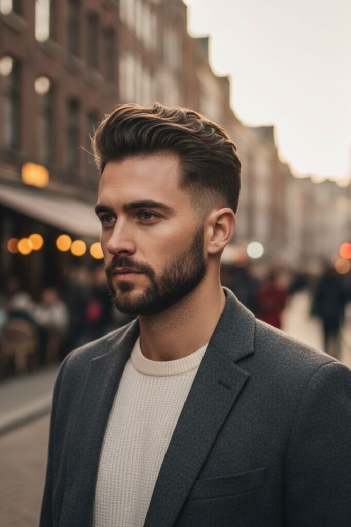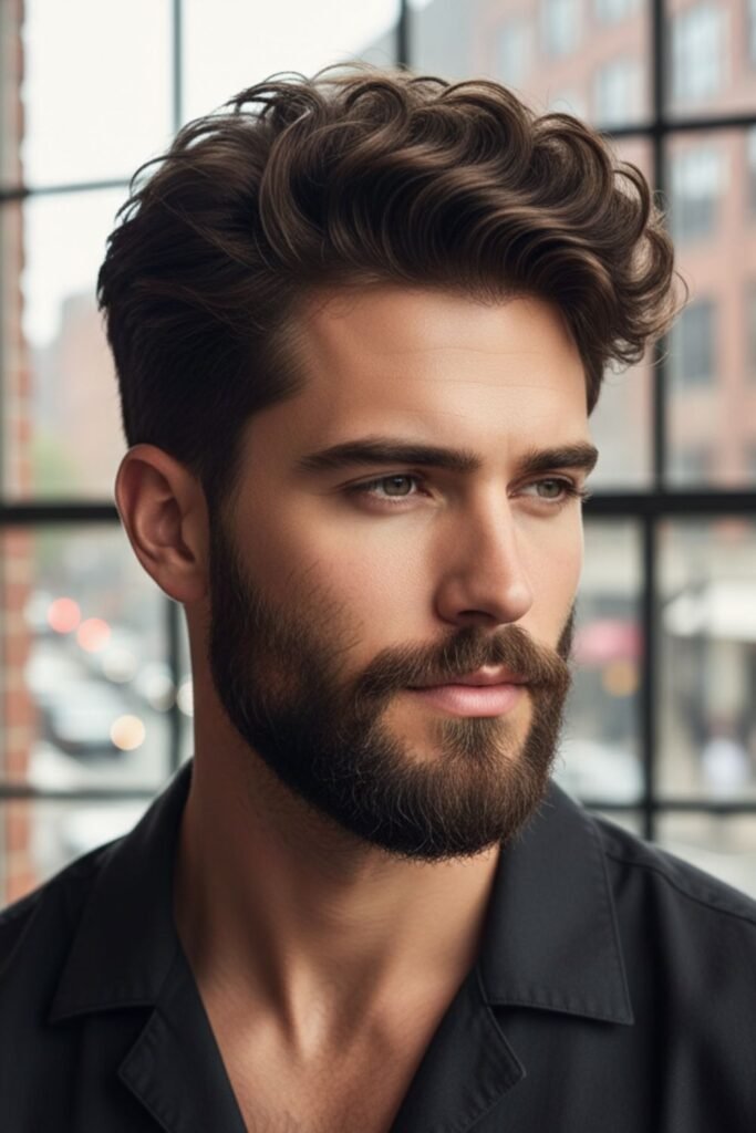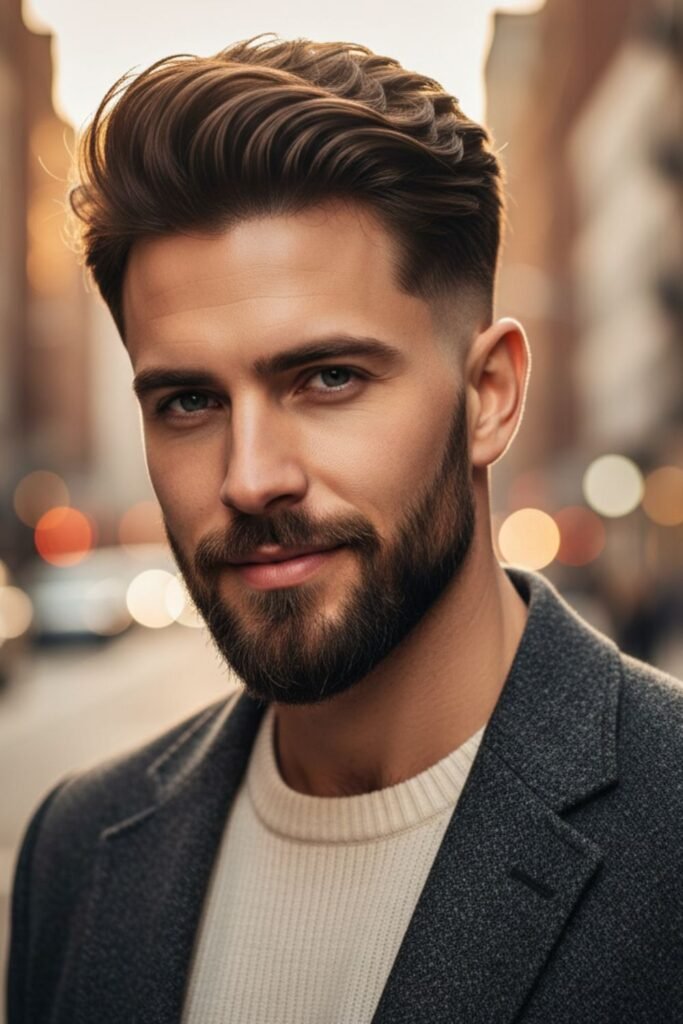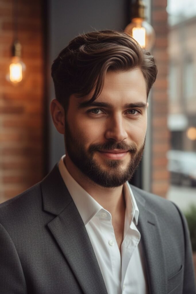 This style is ideal for men with facial hair. It’s a modern look that emphasizes grooming and sophistication.