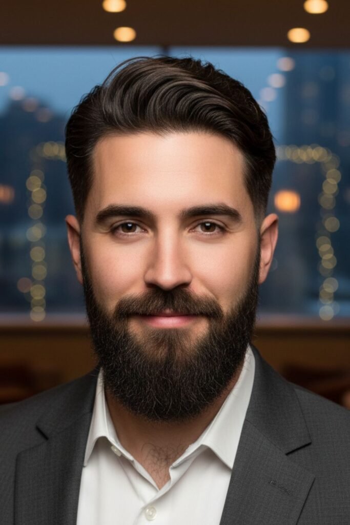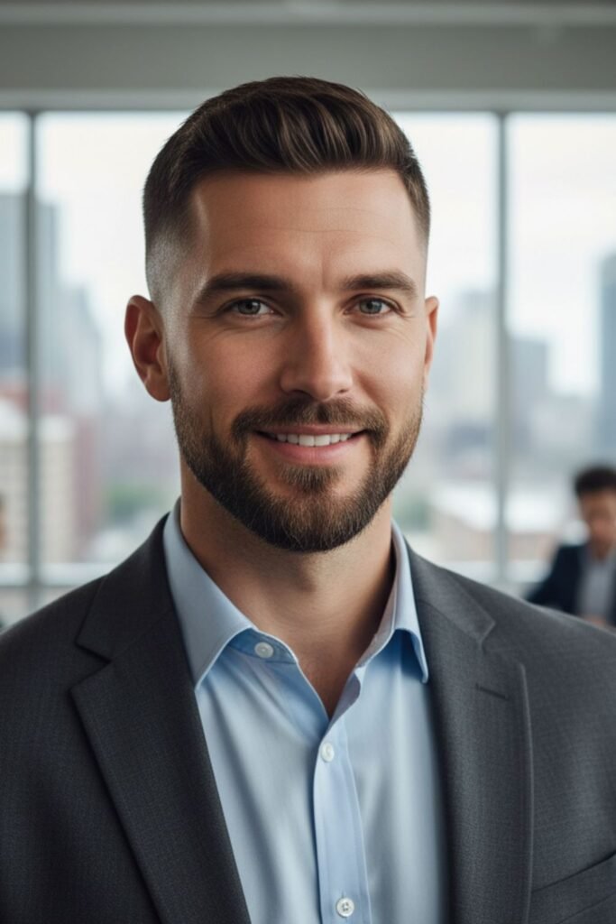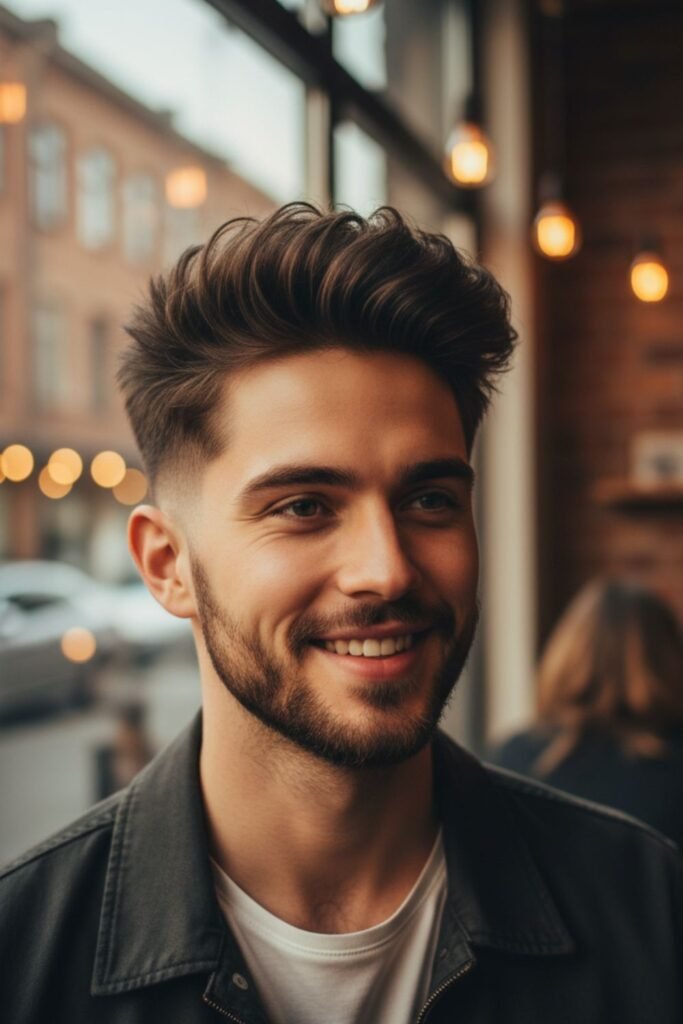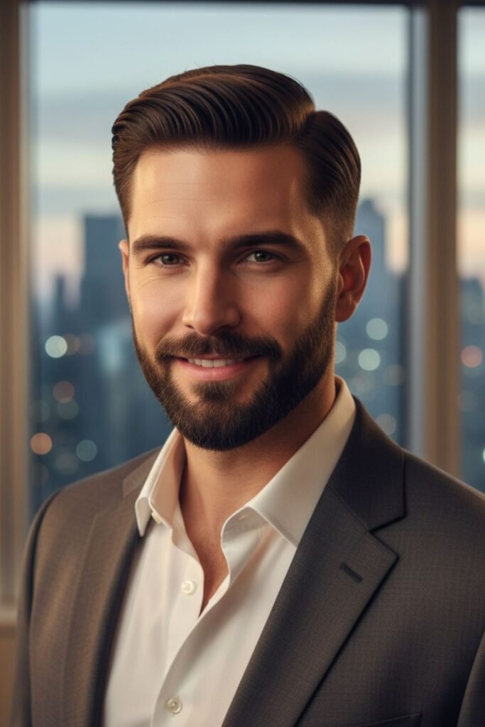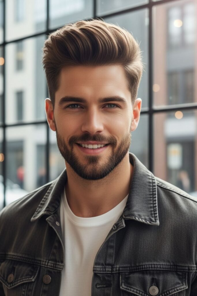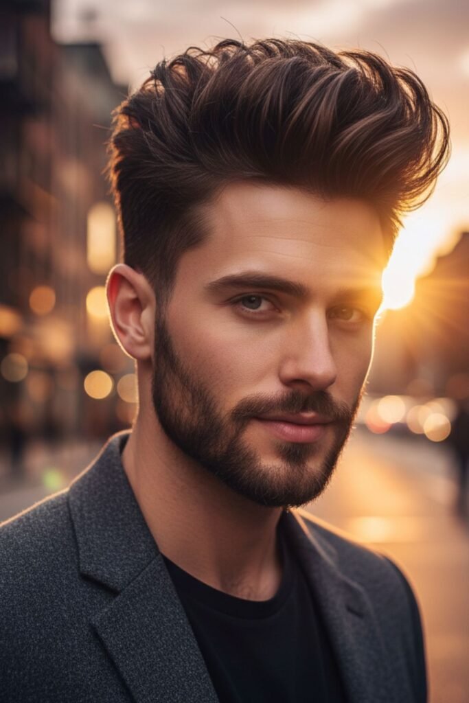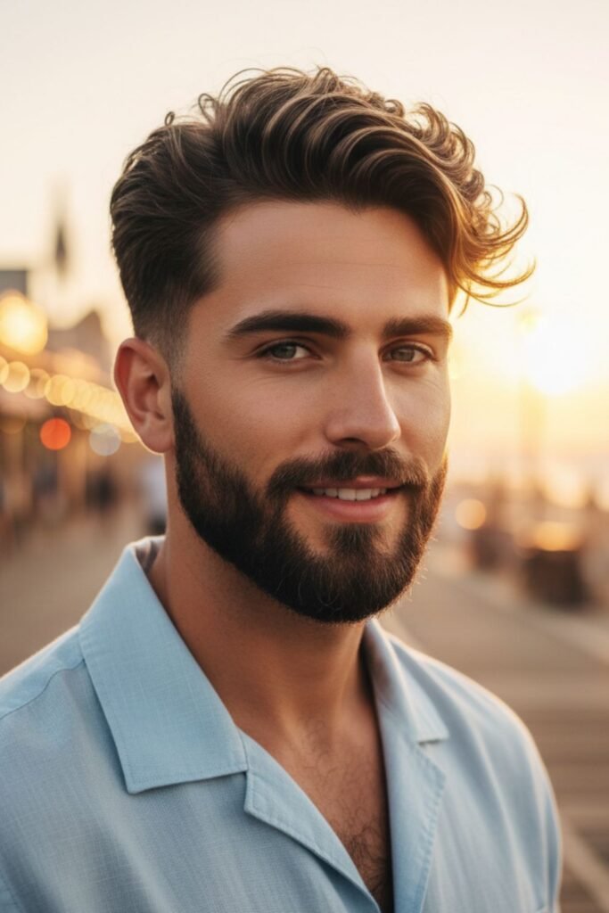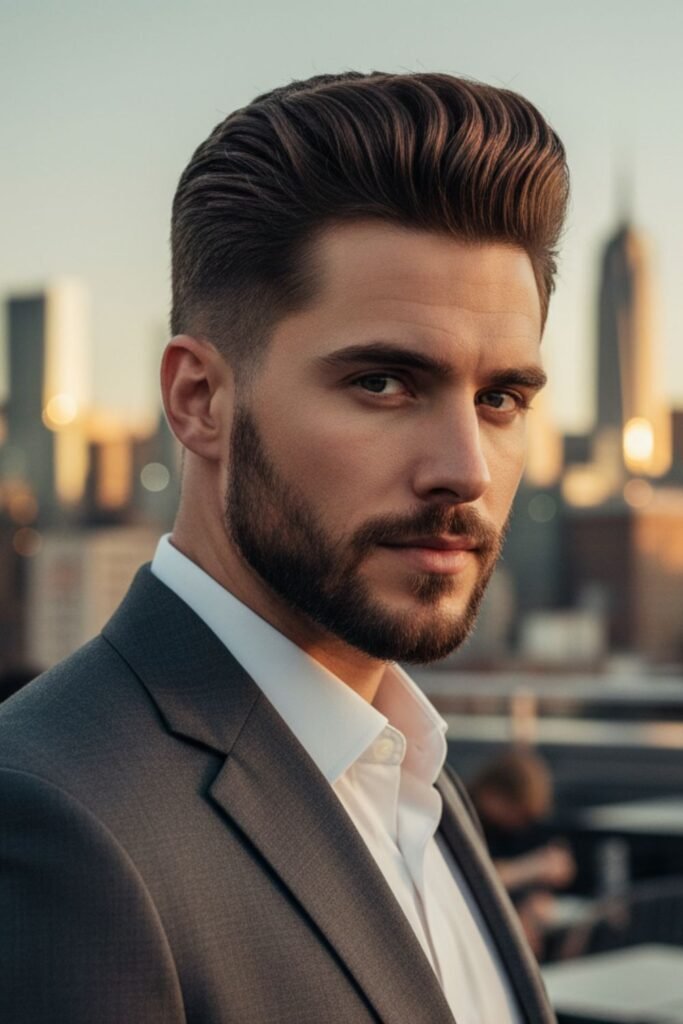 This style is ideal for men with facial hair. It’s a modern look that emphasizes grooming and sophistication.