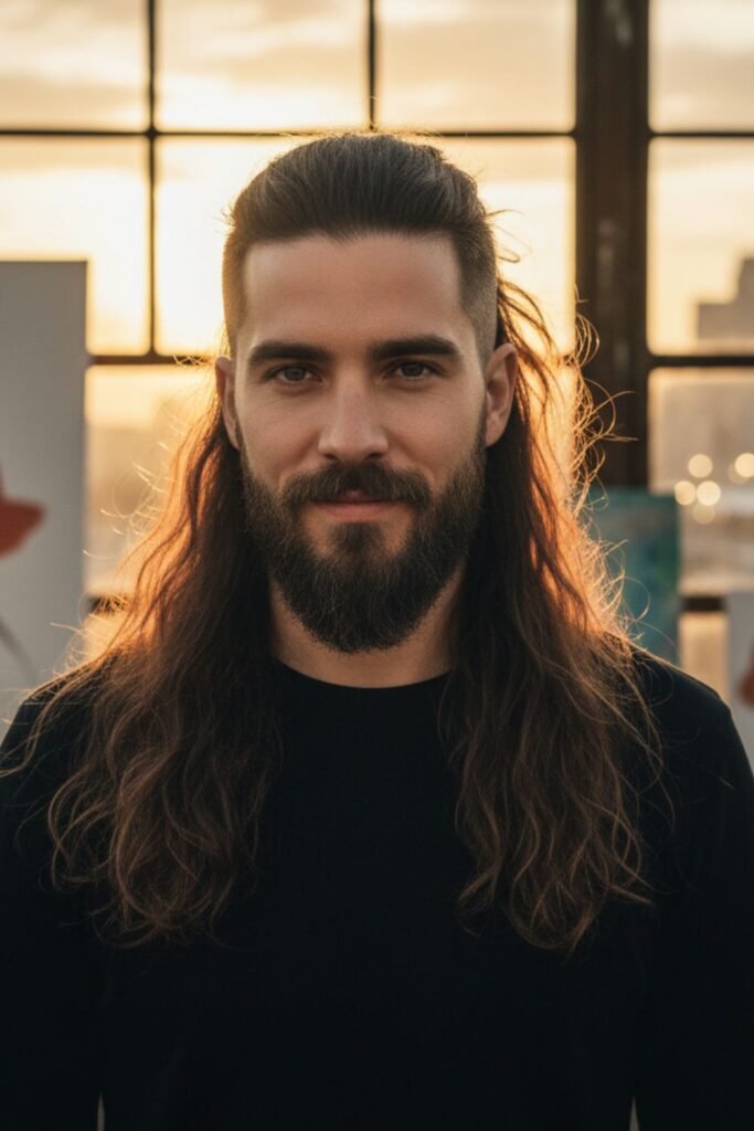 This haircut works for creative men who enjoy experimenting with styles. It allows various looks like ponytails or slick backs.