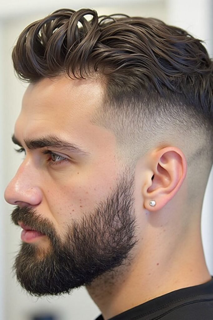 The mid fade with beard blend is a highly stylish and masculine haircut that connects the fade smoothly into the beard. This creates a seamless transition from hair to facial hair, giving a balanced and well-groomed appearance. It is especially popular among men who maintain beards and want a connected, sharp look.