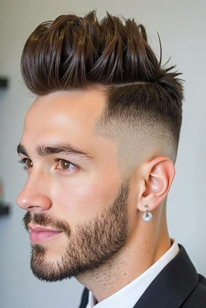 This hairstyle requires a bit of styling effort but gives excellent results when done correctly. Blow-drying and using volumizing products help maintain the height and shape of the quiff. It is best suited for thick or medium hair types because they naturally hold volume better. This haircut is perfect for parties, dates, and fashion-forward looks where you want to stand out with confidence.