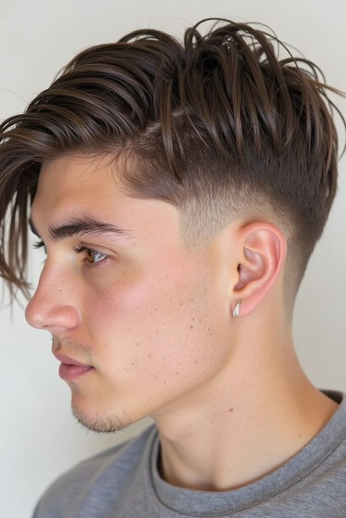 The mid fade with long top is a flexible and modern hairstyle that allows multiple styling options. The sides are faded from the middle, while the top is left significantly longer, giving room for creativity. You can style it into a quiff, slick back, or messy look depending on your mood and occasion. This makes it one of the most versatile mid fade styles in 2026.