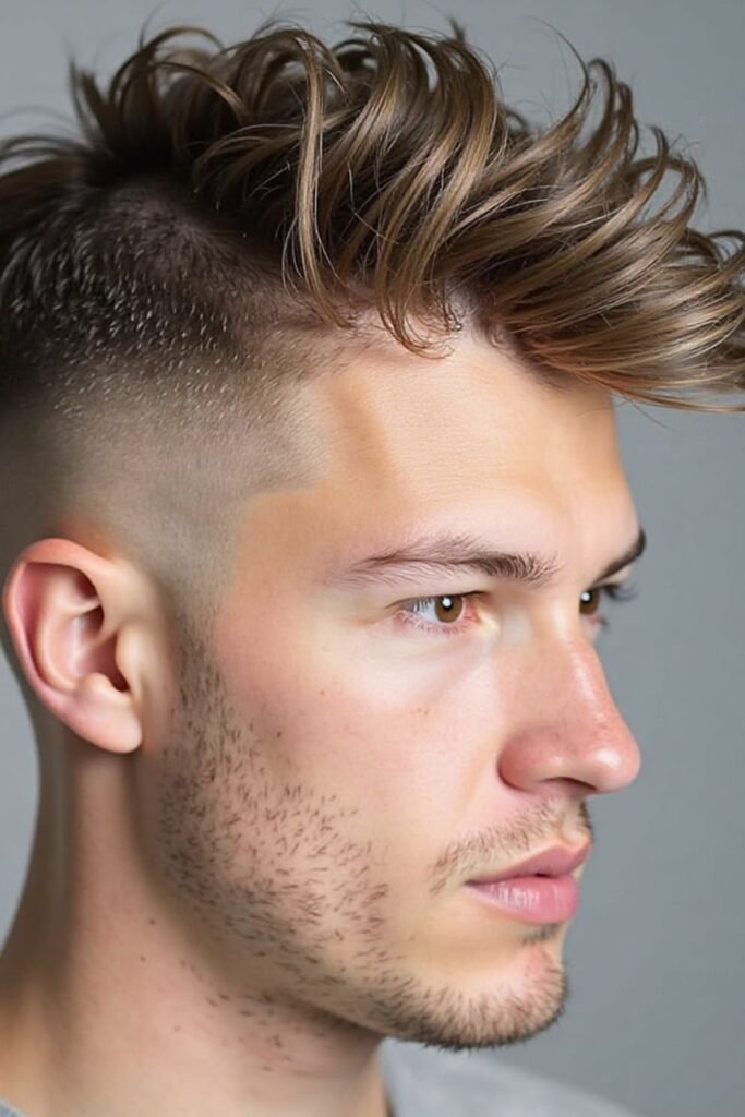 This hairstyle requires strong styling products to keep the mohawk shape in place. It is ideal for parties, events, and fashion-forward personalities who like to stand out. The mohawk mid fade represents a fearless and modern attitude.