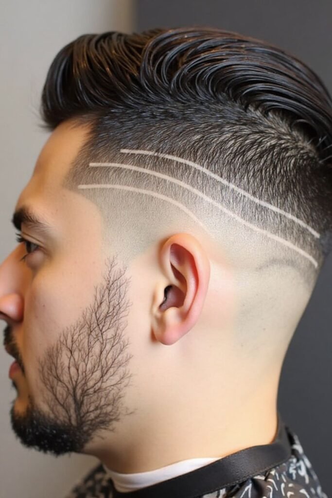 This hairstyle is perfect for men who want a standout and creative look. It requires regular maintenance to keep the design sharp and visible, making it a bold fashion statement.