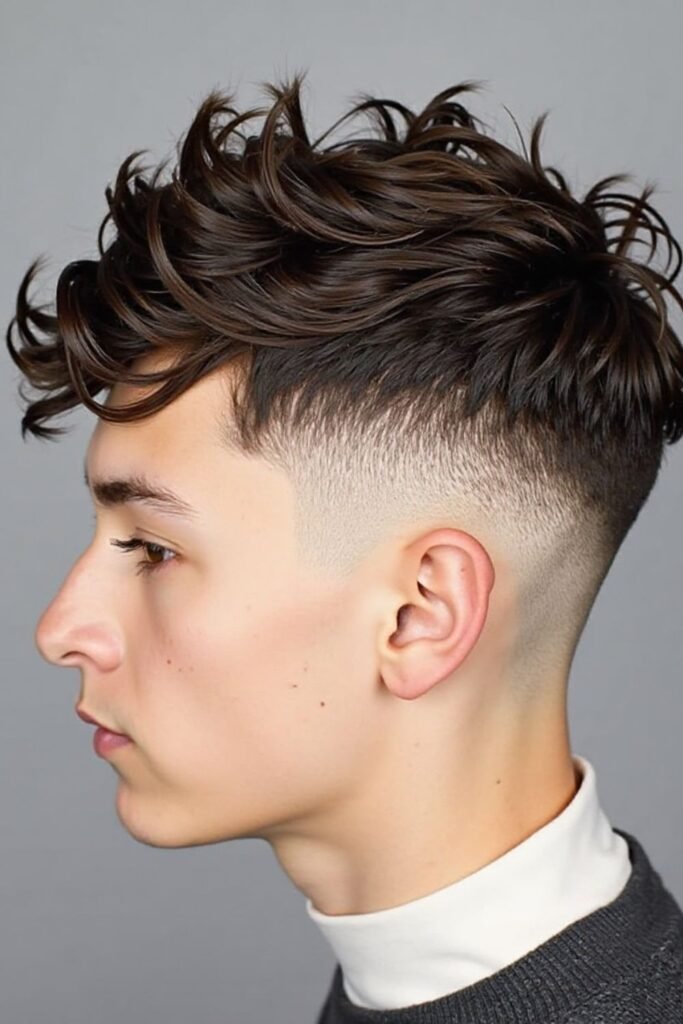 The mid fade with wavy hair is a relaxed yet stylish haircut that enhances natural wave patterns on the top. The waves give movement and texture, while the mid fade keeps the sides clean and sharp. This combination creates a balanced look that is neither too formal nor too casual, making it suitable for many occasions.