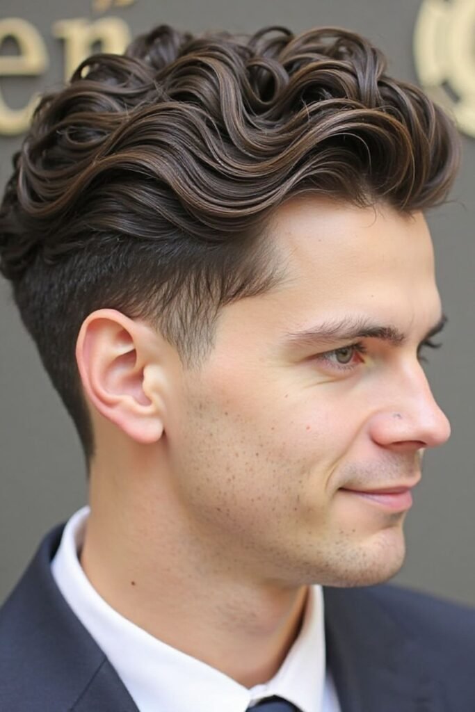 This hairstyle is easy to manage and works well with light styling cream to define the waves. It is perfect for men who want a natural, effortless appearance without spending too much time on grooming. The wavy mid fade is versatile and suits different face shapes, making it a popular choice for everyday wear.