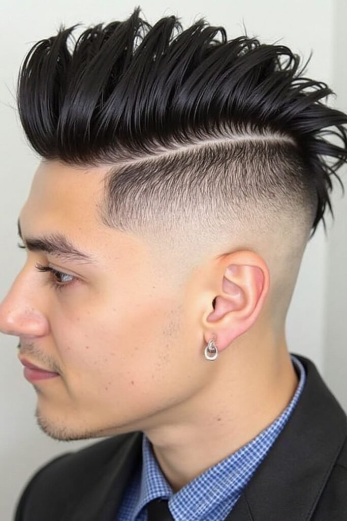 This haircut stands out because of its strong contrast and unique structure. It works well for creative personalities and trendsetters who like experimenting with bold hairstyles. It is a statement look that reflects confidence.
