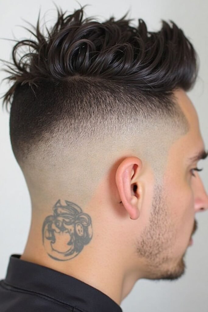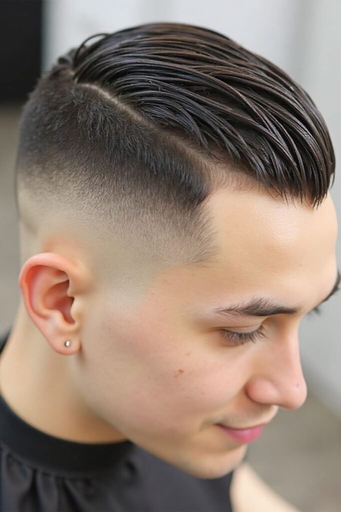 It works for men who enjoy bold hairstyles. The top can be styled in various ways, including slick back or textured. Regular trimming ensures the fade remains crisp and the haircut stays fashionable.