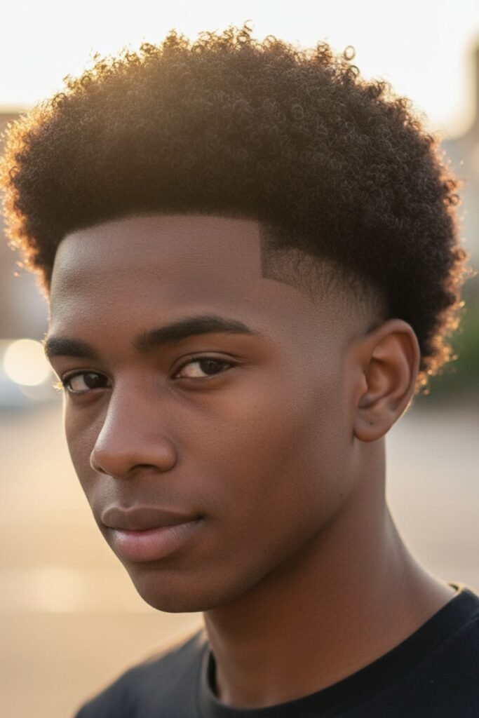 This haircut works perfectly for men with tight curls. It reduces bulk on the sides while allowing the Afro to remain prominent. Minimal styling ensures the curls stay defined and the fade looks sharp.