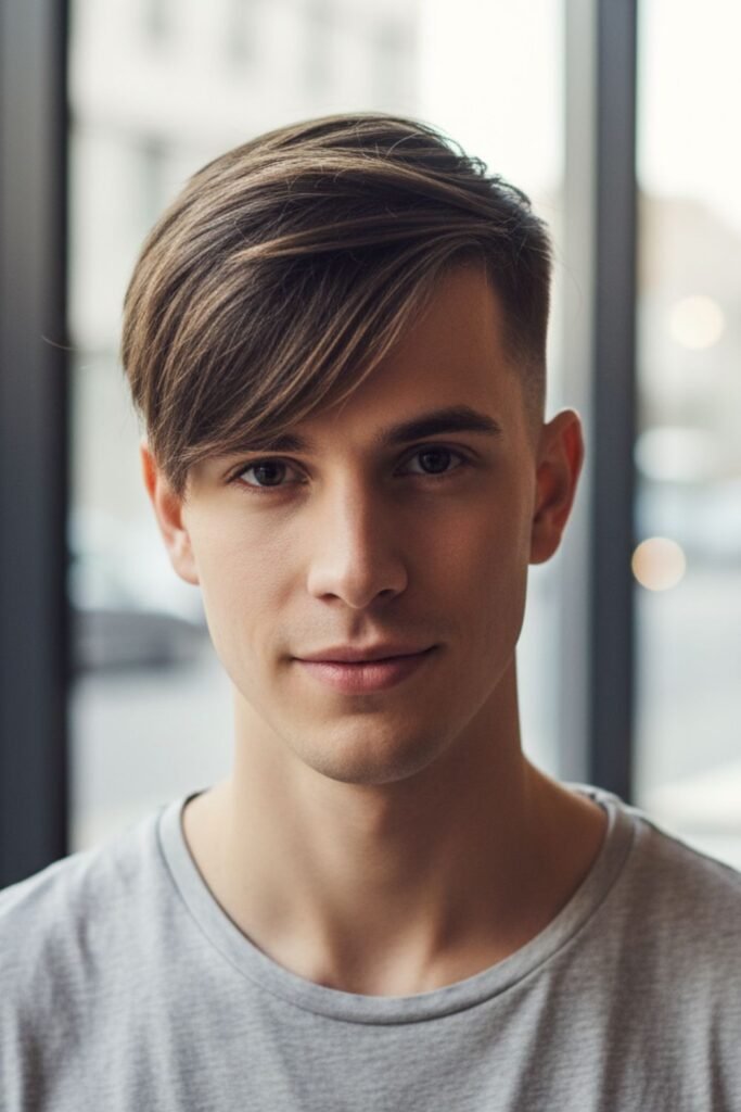 This style works well for straight or slightly wavy hair. Minimal styling with wax or pomade enhances the angle and keeps the fringe defined. It’s perfect for casual and semi-formal looks.