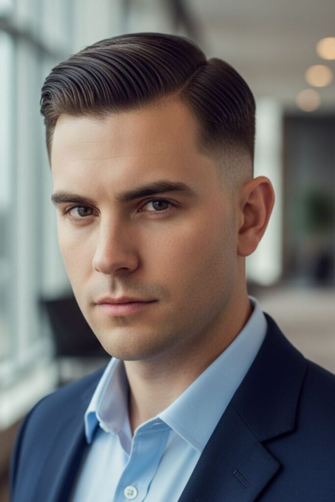 This haircut works well for office jobs, school, or formal events. It is easy to style using a comb and a small amount of gel. The side part keeps the hairstyle looking tidy and gives a timeless and elegant appearance.